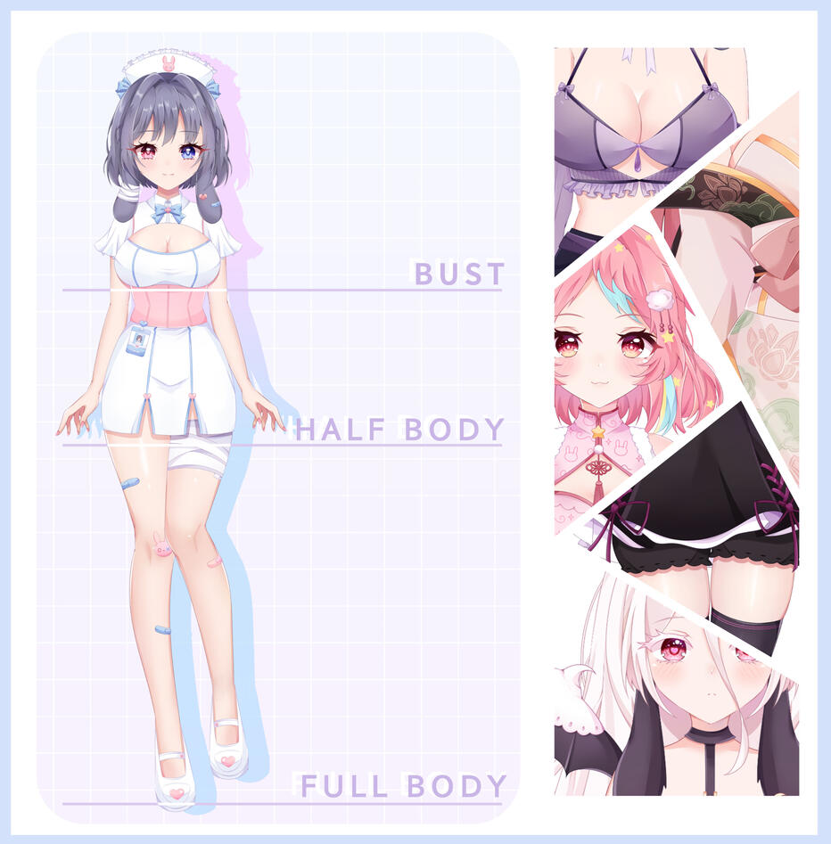 Includes Model art ONLY (no rigging)/.PSD file ready for rigging in Live2d𐐪 Bust base price - $550